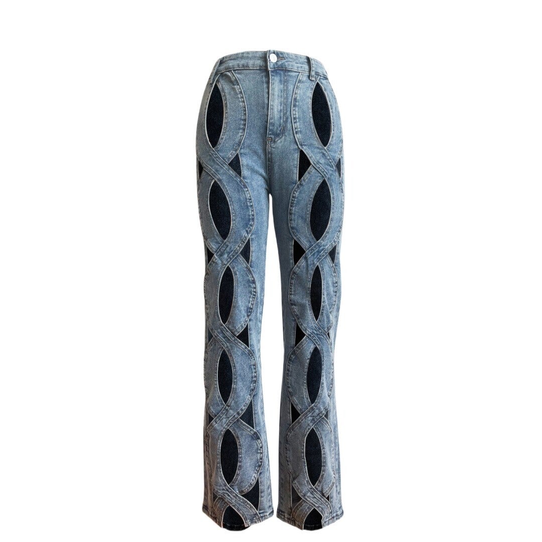 Women’s Street Sexy Solid Color Full Length Hollow Out Jeans